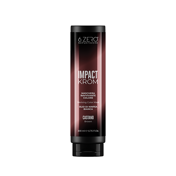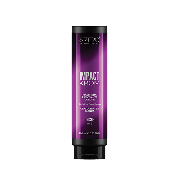 Pronta all’uso e facile da applicare, Impact Krom di 6.Zero è la maschera ideale per ravvivare il colore tra un trattamento e l’altro, esaltando i riflessi e illuminandoli con sfumature brillanti.