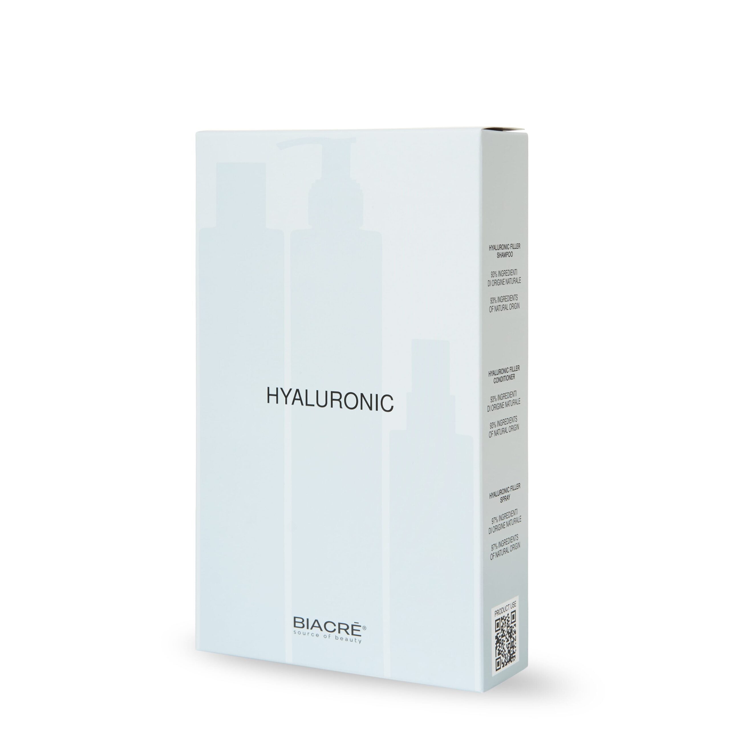 Trattamento con Acido Ialuronico associato a ingredienti naturali, per offrire ai capelli un aspetto sano, robusto e idratato.