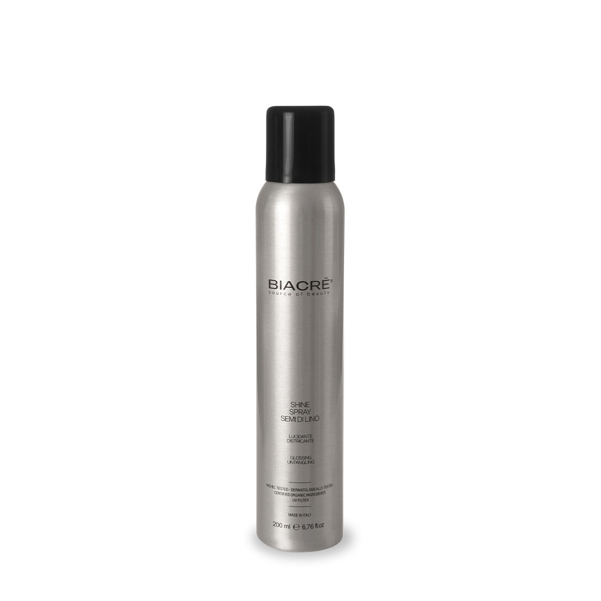 Spray lucidante, districante. Specifico per capelli opachi, spenti e sfibrati, in quanto ne migliora la struttura rendendoli soffici e luminosi. Con Olio Biologico di Semi di Lino, di Mandorle e Albicocca, i capelli saranno più brillanti e setosi.