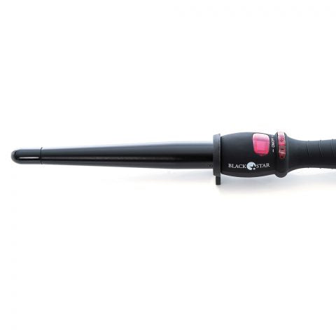 Domino Ferro Conico Blackstar è un arricciacapelli professione a forma conica che permette di realizzare onde più voluminose alla radice e più definite alle punte. Con fusto al titanio ceramizzato e puntale di sicurezza freddo, pratico manico anatomico in gomma morbida. Si scalda in pochi secondi