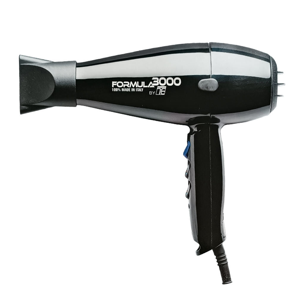 L'asciugacapelli professionale Formula 3000 ha un motore da 2000 W per un'asciugatura veloce. Con diverse impostazioni di calore e velocità, è adatto a tutti i tipi di capelli. I materiali resistenti al calore e la struttura ergonomica lo rendono comodo e duraturo.