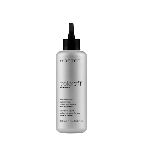 Color off Koster, smacchiatore liquido epidermico indispensabile per un utilizzo professionale in salone. Rimuove delicatamente ogni traccia di colore dopo il servizio di colorazione effettuato dal parrucchiere. L’azione detergente gentile è assicurata dalla formula arricchita con attivi funzionali che contribuiscono ad equilibrare il naturale livello di idratazione della cute, sviluppando protezione e funzione smacchiante eccellente.