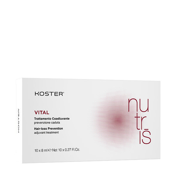 Completa il trattamento coadiuvante anticaduta Nutris Vital l’utilizzo della lozione anticaduta: dalla ricerca dei laboratori Koster, una formulazione esclusiva che favorisce la microcircolazione, stimolando l’attività del bulbo pilifero. L’azione del programma capillare in fiale prolunga il ciclo vitale del capello, favorendo la ricrescita e rinforzando la struttura capillare.