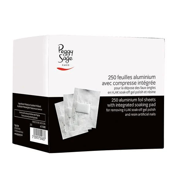 Il kit peggy sage di fogli in alluminio con compressa integrata contiene 250 fogli. Ideale per sciogliere le unghie finte in gel e resina senza danneggiare le unghie naturali. Pratico e facile da usare, perfetto per una manicure professionale.