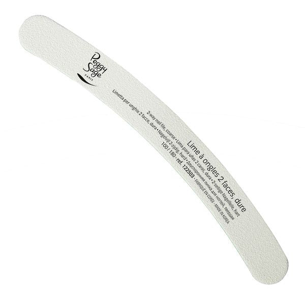 Il lotto di 1 limetta mezzaluna 2 facce PEGGY SAGE è perfetto per una manicure professionale. Le limette, con una superficie ampia e una grana di 100/180, offrono un maggiore comfort e una migliore ergonomia. Scegli la giusta grana in base alla durezza delle unghie e usa un detergente delicato senza acetone per un risultato impeccabile.