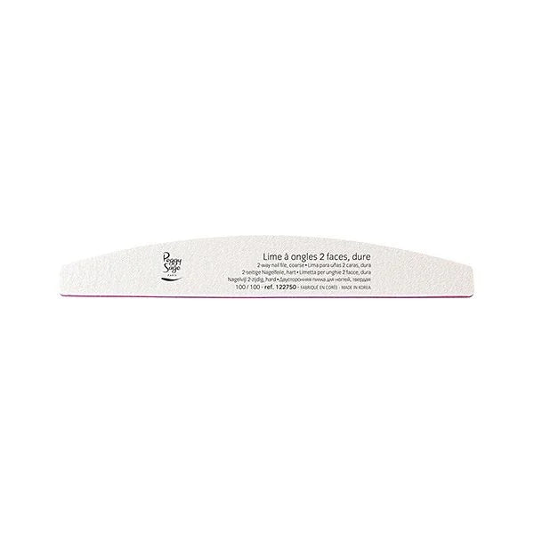 La limetta mezzaluna 2 facce PEGGY SAGE è perfetto per una manicure professionale. Le limette, con una superficie ampia e una grana di 100/100, offrono un maggiore comfort e una migliore ergonomia. Scegli la giusta grana in base alla durezza delle unghie e usa un detergente delicato senza acetone per un risultato impeccabile.