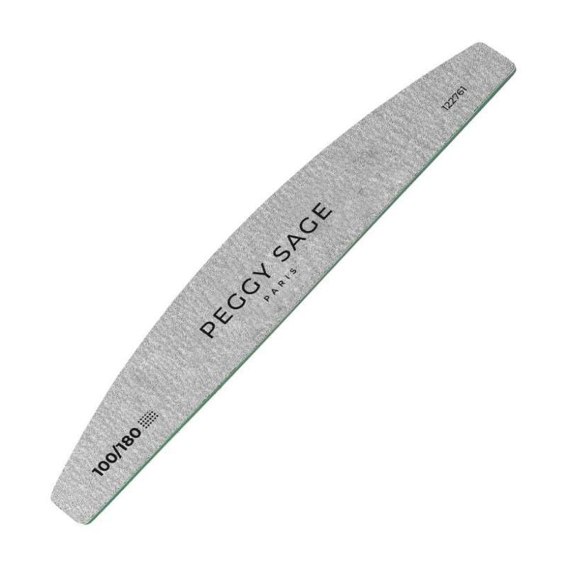 La limetta mezzaluna 2 facce PEGGY SAGE è perfetto per una manicure professionale. Le limette, con una superficie ampia e una grana di 100/180, offrono un maggiore comfort e una migliore ergonomia. Scegli la giusta grana in base alla durezza delle unghie e usa un detergente delicato senza acetone per un risultato impeccabile.