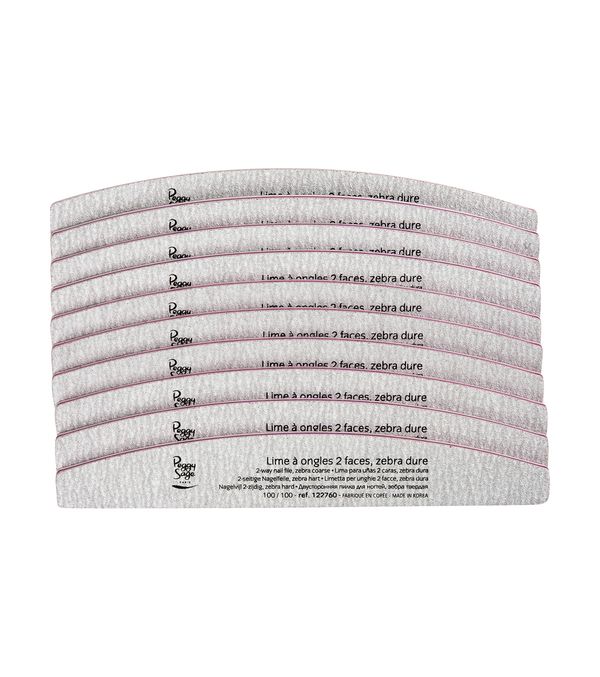Il lotto di 10 limette mezzaluna 2 facce PEGGY SAGE è perfetto per una manicure professionale. Le limette, con una superficie ampia e una grana di 100/100, offrono un maggiore comfort e una migliore ergonomia. Scegli la giusta grana in base alla durezza delle unghie e usa un detergente delicato senza acetone per un risultato impeccabile.