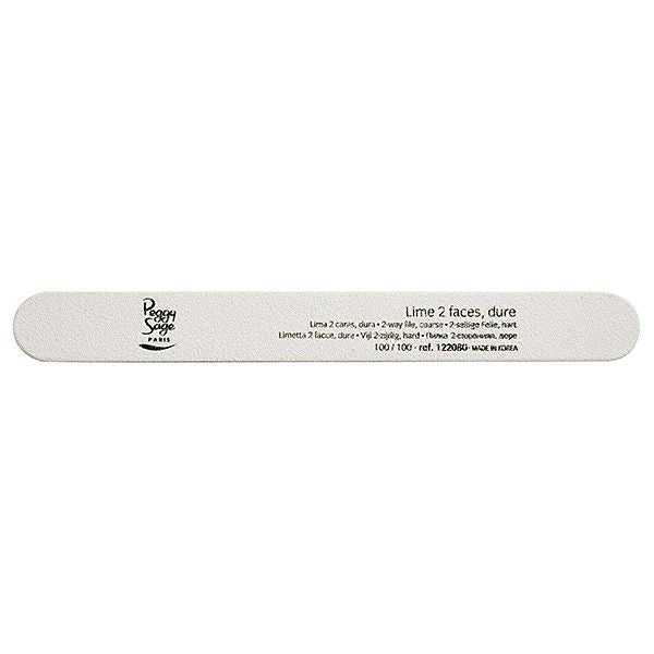 Il lotto di 1 limetta 2 facce Peggy sage è perfetto per una manicure professionale. Le limette, con una superficie ampia e una grana di 100/100, offrono un maggiore comfort e una migliore ergonomia. Scegli la giusta grana in base alla durezza delle unghie e usa un detergente delicato senza acetone per un risultato impeccabile.