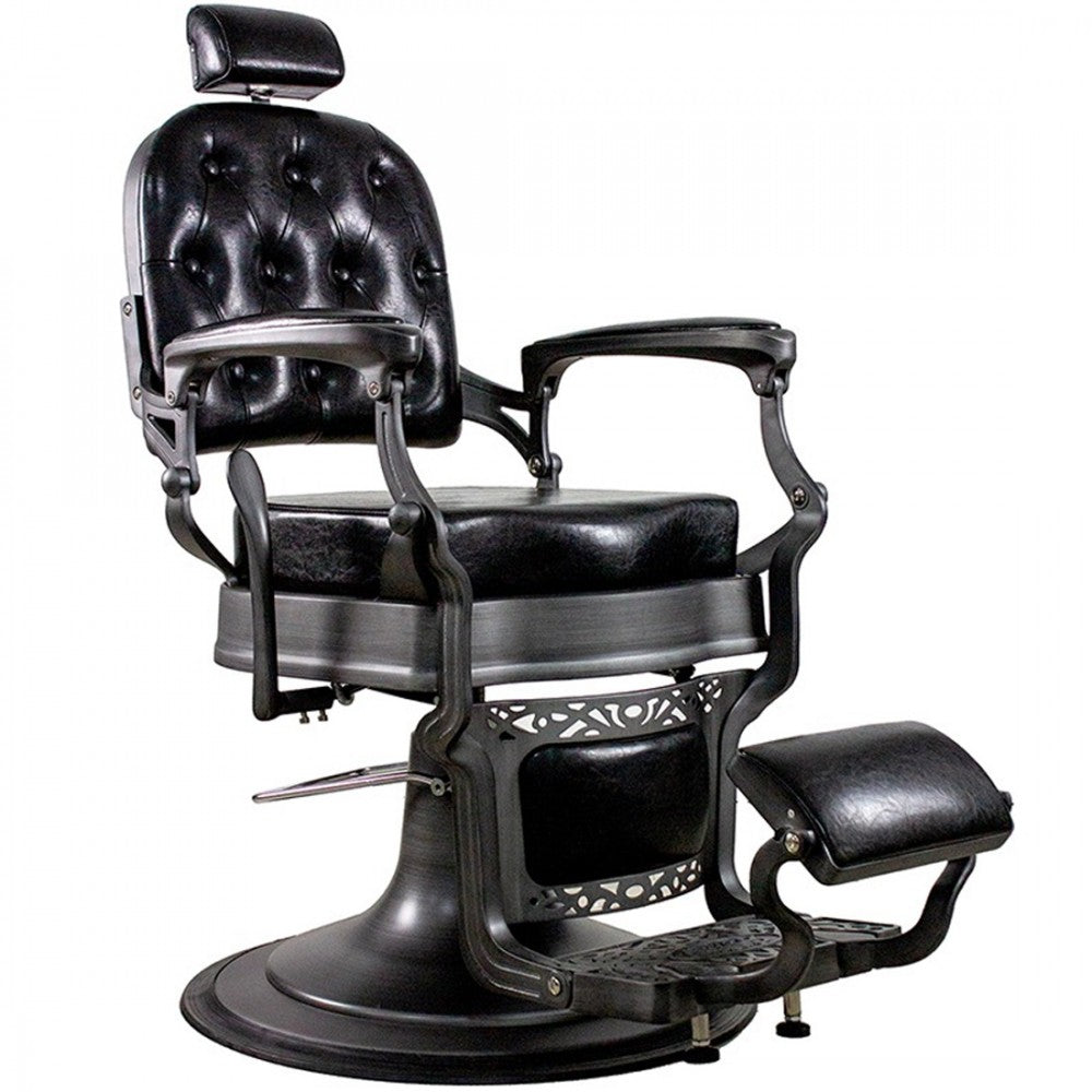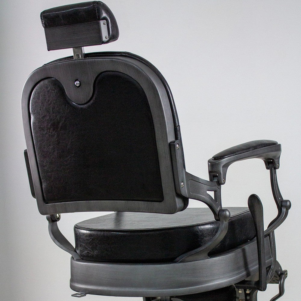 Aggiungi un tocco di stile retrò e raffinatezza al tuo barber shop con questa poltrona barbiere vintage, pensata per unire estetica e funzionalità. La solida struttura in metallo, disponibile nelle varianti bronzo o grigio spazzolato, si adatta con facilità a diversi ambienti e stili d’arredo.