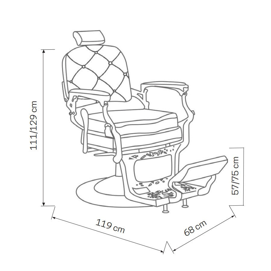 Lo schienale reclinabile fino a 180° consente una perfetta posizione per ogni esigenza, mentre il poggiatesta regolabile in altezza e inclinazione assicura un supporto personalizzato, ideale per rasature precise e trattamenti barba. I braccioli imbottiti completano l’esperienza di relax.
